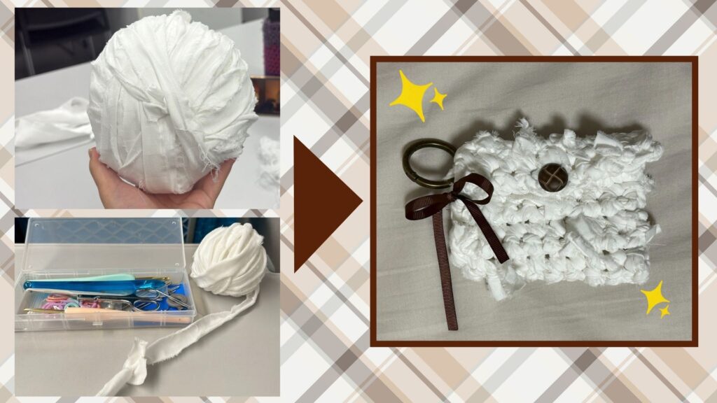 ▲「裂き編み」※という手法を使って「布」が新たな素材の小物に!