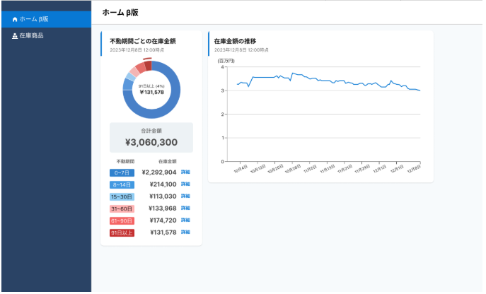 - 不動期間ごとに在庫金額と割合を円グラフで確認できます